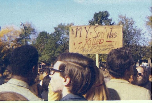 Hartford, 1969: “My son was killed in Vietnam–for what?” (Photo: Thornton)