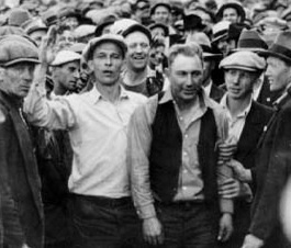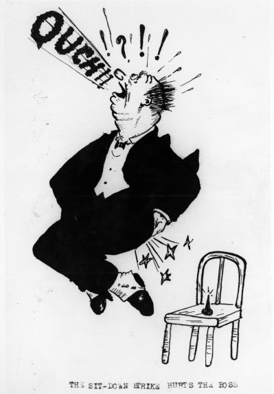 Where did the sit-down strike originate? In 1905 at the founding convention of the Industrial Workers of the World. Lucy Parsons (widow of Haymarket martyr Albert Parsons) told the crowd that “the strike of the future is not to strike and go out and starve, but to strike and remain in and take possession of the necessary property of production.” Lucy Parsons’ words were prophetic: a year later, Wobblies at a New York General Electric factory led what they called a “folded arms” strike inside the plant that lasted three days. The first large-scale sit-downs took place during 1936 among Firestone workers in Akron, Ohio to win a wage increase and curb assembly line speed-ups..