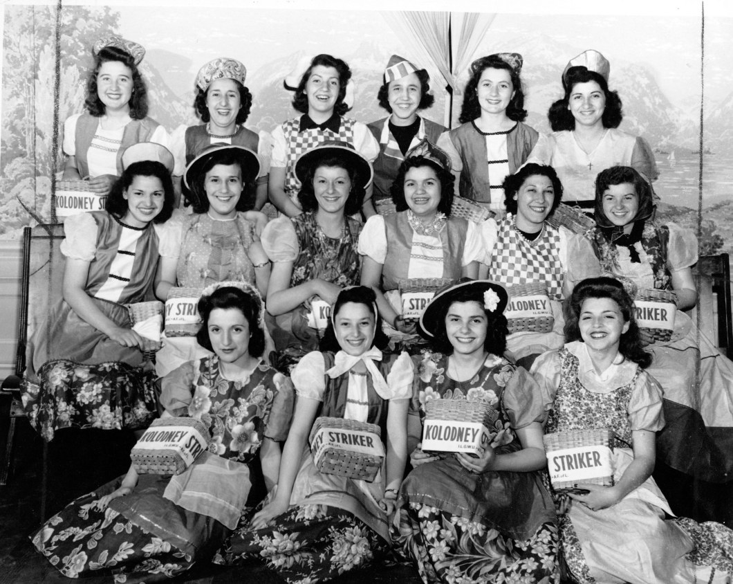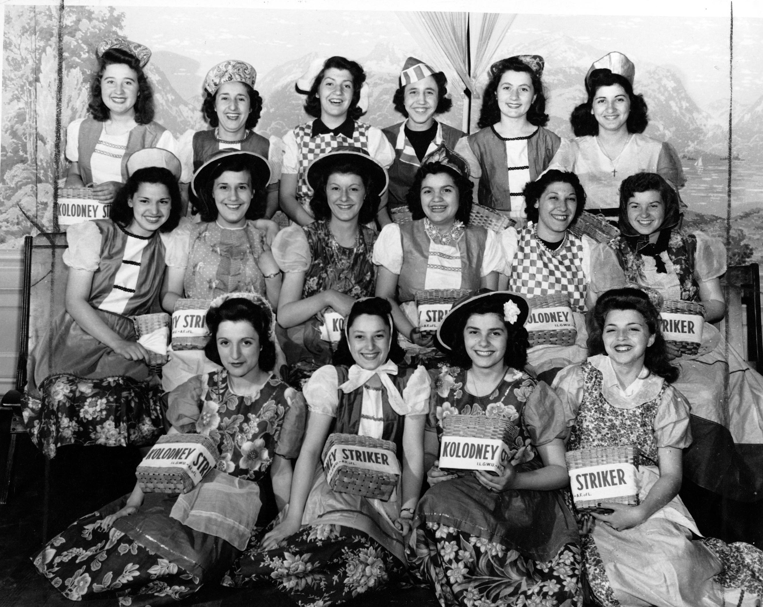 Strikers from Kolodney garment shop in their “peasant girl” uniforms. They are on their way to downtown Hartford to distribute leaflets about their strike. Police interfered with their action. [Kheel Center for Labor-Management Documentation and Archives, Cornell University Library]